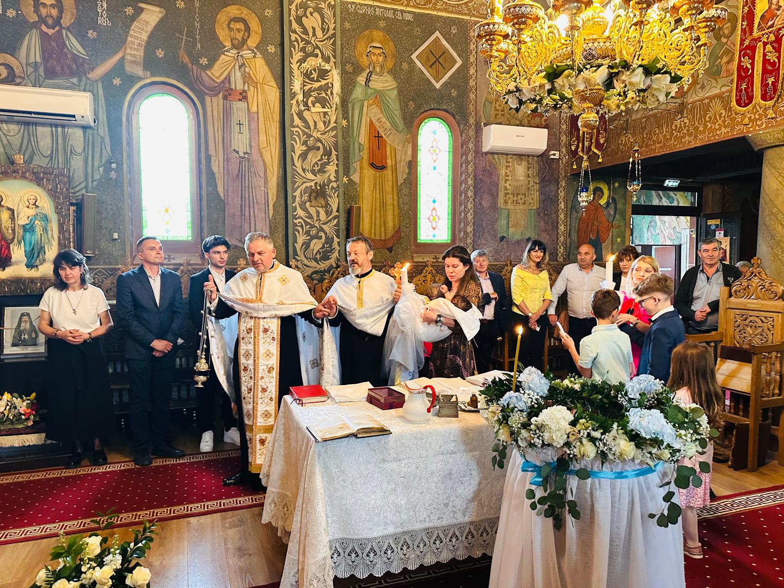 Într-un mediu solemn și plin de recunoștință, Sfânta Taină a Botezului a fost săvârșită de către Părintele Petru Munteanu și Părintele Ovidiu Untea. Rugăciunile rostite au adus binecuvântare și protecție asupra micuțului în drumul său pe calea credinței.